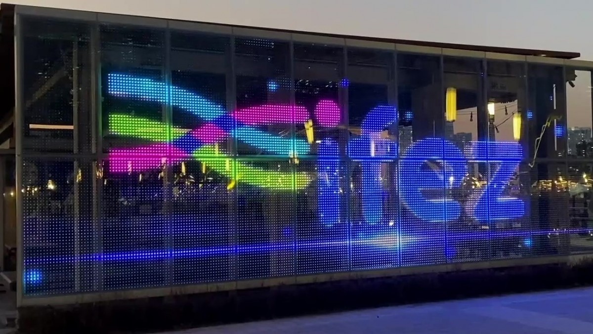 <최근 인천 송도 보트하우스에 미디어월 형태로 설치된 투명LED유리 지글라스/사진제공=글람>