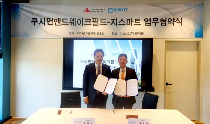 건축용 디스플레이 전문업체 지스마트는 글로벌 종합부동산 서비스업체 쿠시먼앤드웨이크필드(Cushman&Wakefield)와 상업용 부동산 프로젝트 컨설팅 관련 사업 협력을 위한 업무협약을 20일 체결했다.